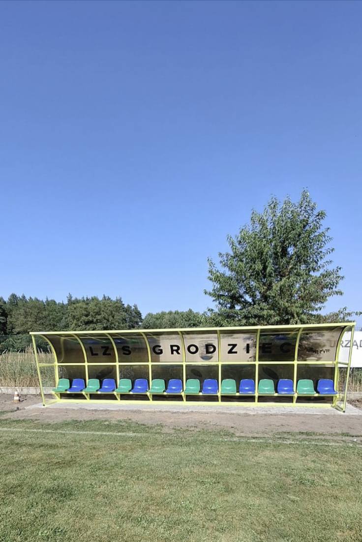 Na Stadionie w Grodźcu pojawiły się nowe wiaty dla zawodników rezerwowych. Prace trwały kilka tygodni – najpierw trzeba było zdemontować stare ławki, przygotować teren i podłoże, a dopiero potem zamontować nowe konstrukcje. Wszystko zgodnie z wymogami licencyjnymi PZPN. Efekt? Komfortowe, estetyczne i gotowe na sportowe emocje! Teraz zawodnicy rezerwowi mogą liczyć na dużo lepsze warunki podczas meczów. Tym samym wymieniliśmy wysłużone ławki rezerwowych na wszystkich naszych stadionach.